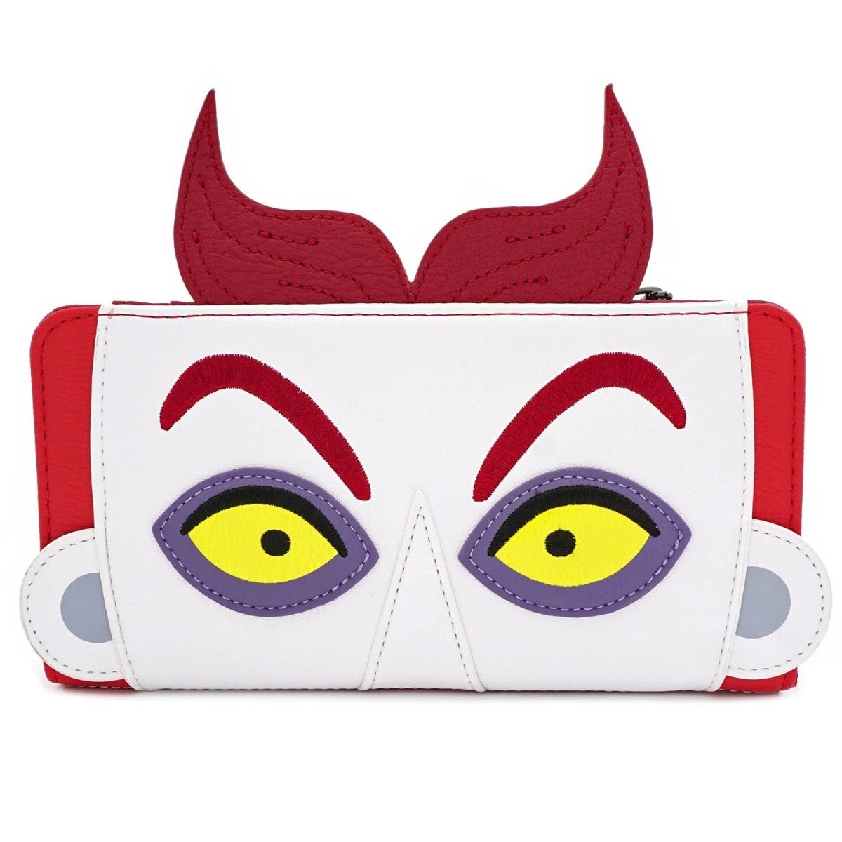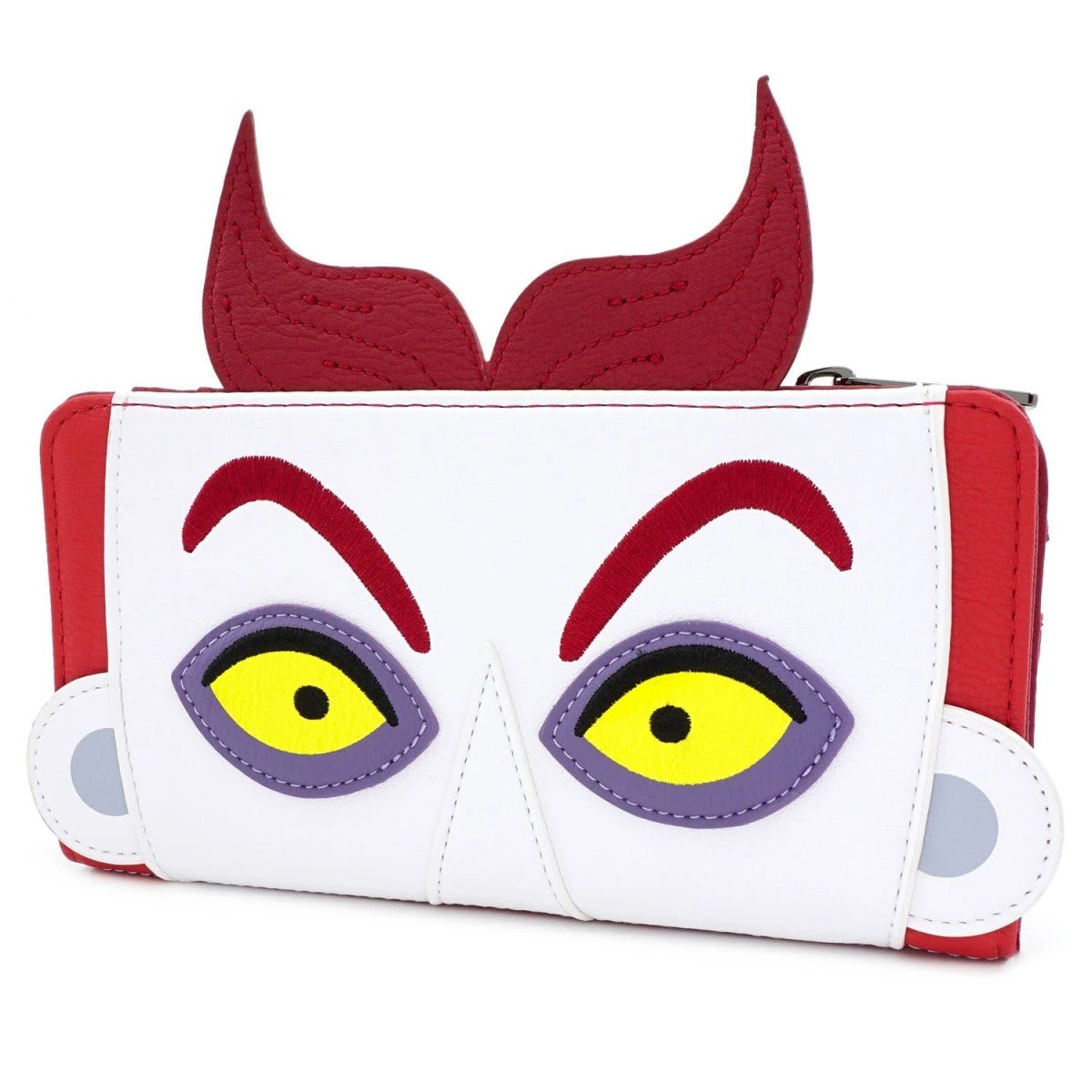 This faux leather flap purse featuring the character Lock from the Nightmare Before Christmas, includes applique, debossed and embroidered details. Don’t forget his pals, Shock and Barrel. They make the perfect trio.